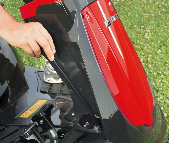 Easy-Lift Schnitthöhenverstellung neben dem SitzDie zentrale Schnitthöhenverstellung liegt griffbereit am Fahrersitz und bietet mehrere Einstellstufen. So passen Sie die Schnitthöhe schnell an Wuchs und gewünschtes Ergebnis an. |