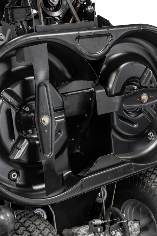 122 cm Mähdeck für effizienten ArbeitsfortschrittDas breite Mähdeck mit zwei Messern ermöglicht zügiges Mähen auf großen Flächen. Vier Mähwerksrollen unterstützen eine stabile Führung, während die Schnitthöhe bequem vom Sitz aus eingestellt wird. |