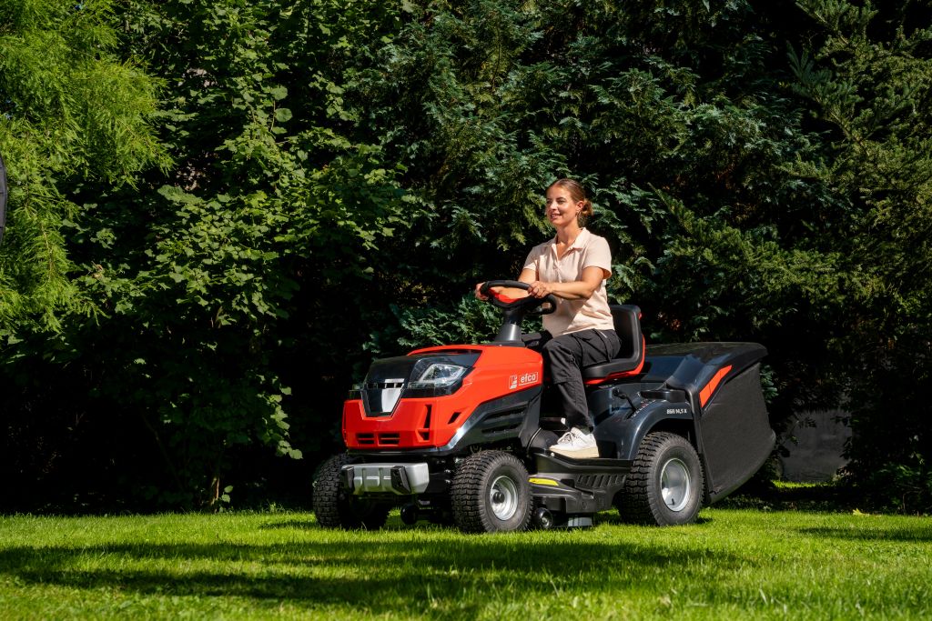 Mit Hinterradantrieb, Hydrostat-Getriebe und umfangreicher Ausstattung ist der Efco EF 86 R/14,5 K eine praxisnahe Wahl für Anwender, die einen leistungsstarken, komfortablen Rasentraktor mit großem Fangvolumen suchen.