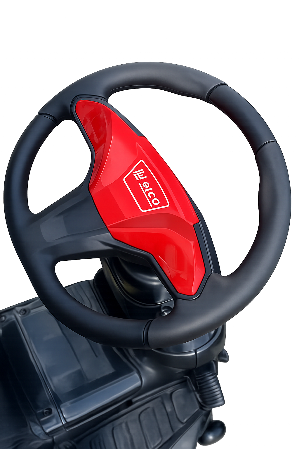 Zusätzliche Robustheit bringt die Metallstoßstange an der Front, die bei unbeabsichtigten Kontakten Schutz und Stabilität bietet. Der werkzeuglose Zugang zur Batterie unter dem Sitz erleichtert Servicearbeiten. Für die Wintereinlagerung ist ein Batterieladegerät im Lieferumfang enthalten.