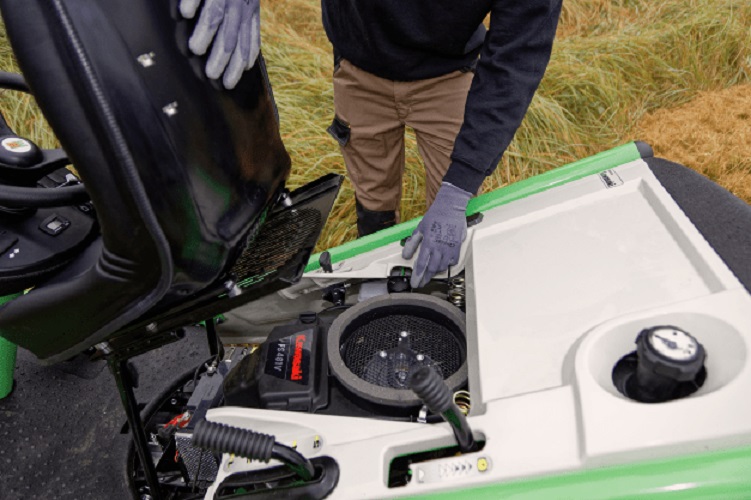 Der Kawasaki-Motor sorgt für die nötige Kraft, um auch das dichteste Gras zu mähen.