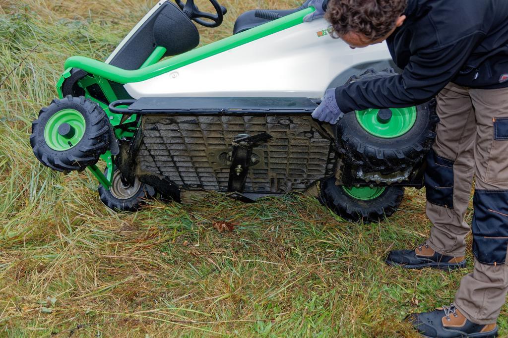 Die Stoßstange wurde verstärkt und für das Mähen angepasst, so dass der MKHPF auch durch das höchste Gras fahren kann.