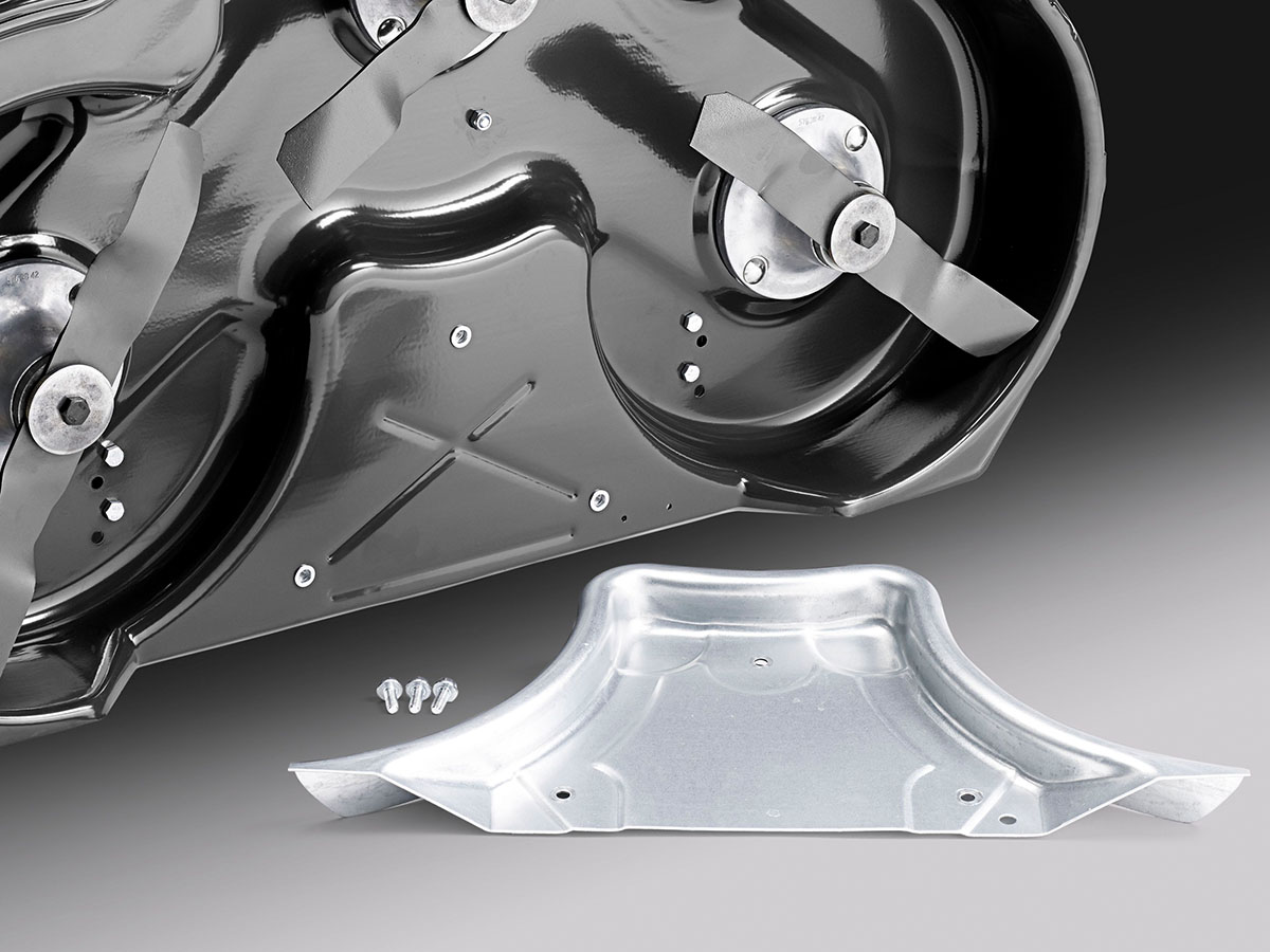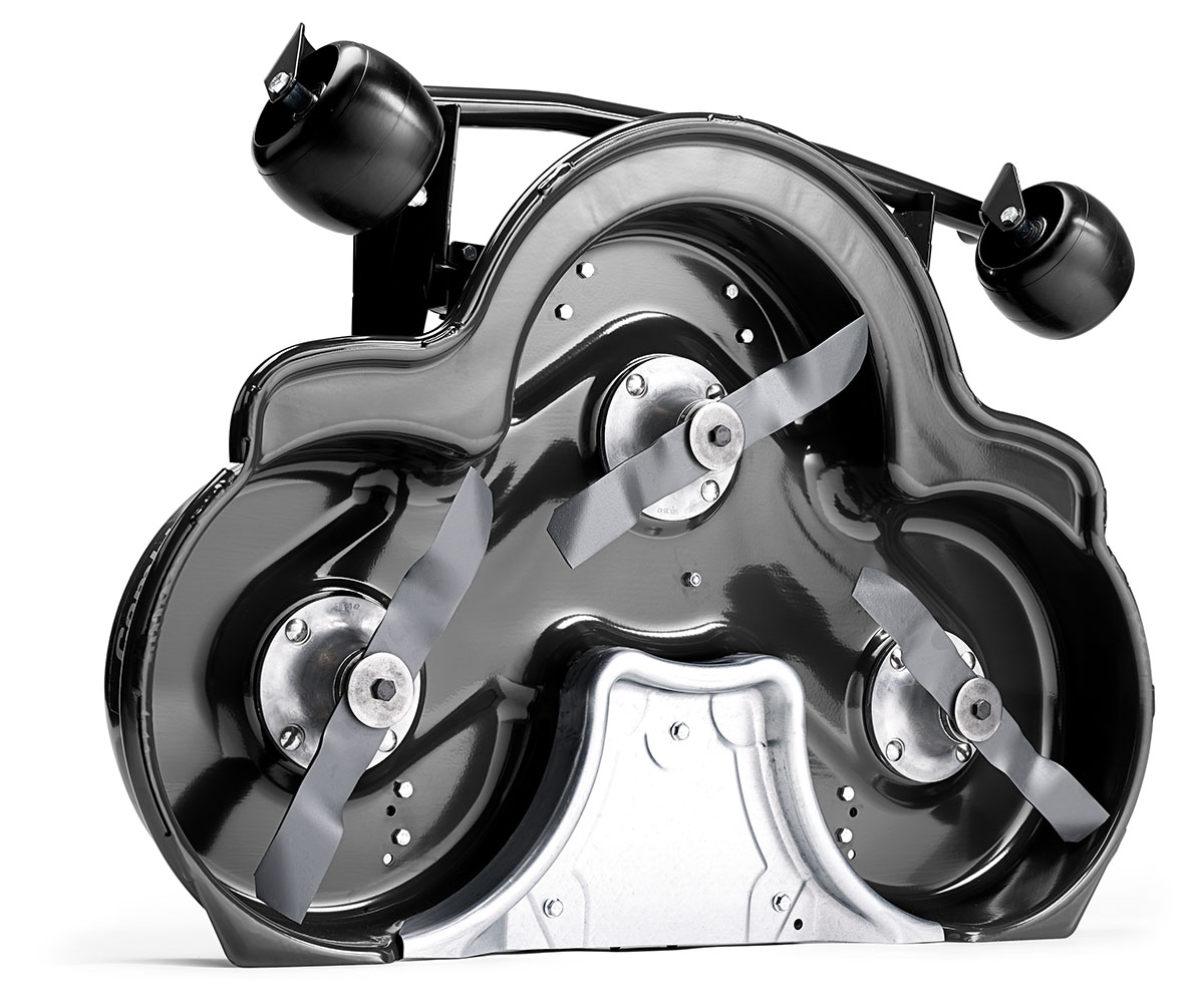 Das Dreimesser-Mähdeck sorgt für einen sauberen, gleichmäßigen Schnitt. Dank schwebendem Mähdeck passt sich das Schneidwerk den Rasenkonturen an und unterstützt ein gleichmäßiges Mähergebnis. Für eine einfache Pflege lässt sich das Mähdeck in die Serviceposition bringen, was Reinigung und Wartung erleichtert.