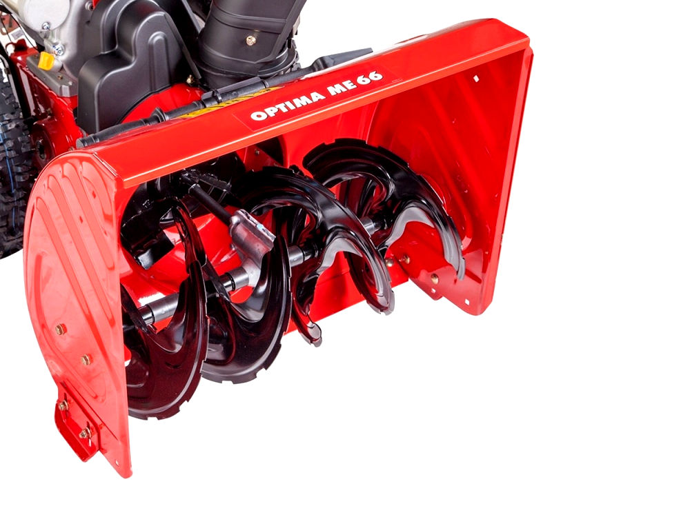 Die MTD Schneefräse Optima ME 66 überzeugt mit moderner Zwei-Stufen-Technologie für maximale Effizienz bei jeder Schneelage. Zwei horizontale Xtreme-Auger-Räumschnecken befördern den Schnee kraftvoll zur Mitte des Räumschilds, wo eine zusätzliche vertikale Schnecke ihn zuverlässig durch den Auswurfschacht nach oben auswirft. So bewältigt die Optima ME 66 selbst schweren, nassen oder vereisten Schnee mühelos.