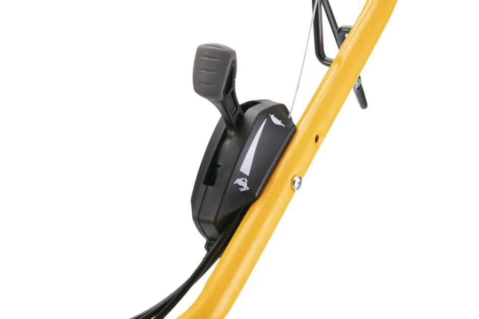Die zentrale Schnitthöheneinstellung bietet 6 Stufen im Bereich von 22 bis 80 mm. Für komfortables Mähen sorgt der FULCRUM Holm mit seitlicher Verstellung und Drehklappgriff. Die kugelgelagerten Räder (vorne 200 mm, hinten 280 mm) erleichtern das Manövrieren auch auf unebenem Gelände. Der DSC Hinterradantrieb unterstützt ein kontrolliertes Anfahren und gleichmäßiges Arbeiten.