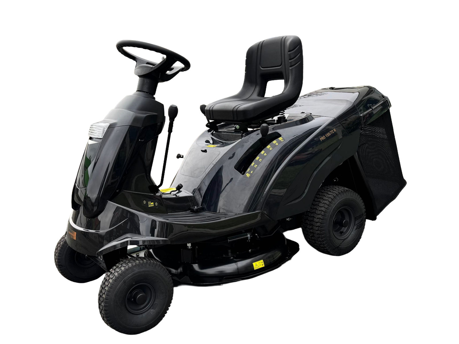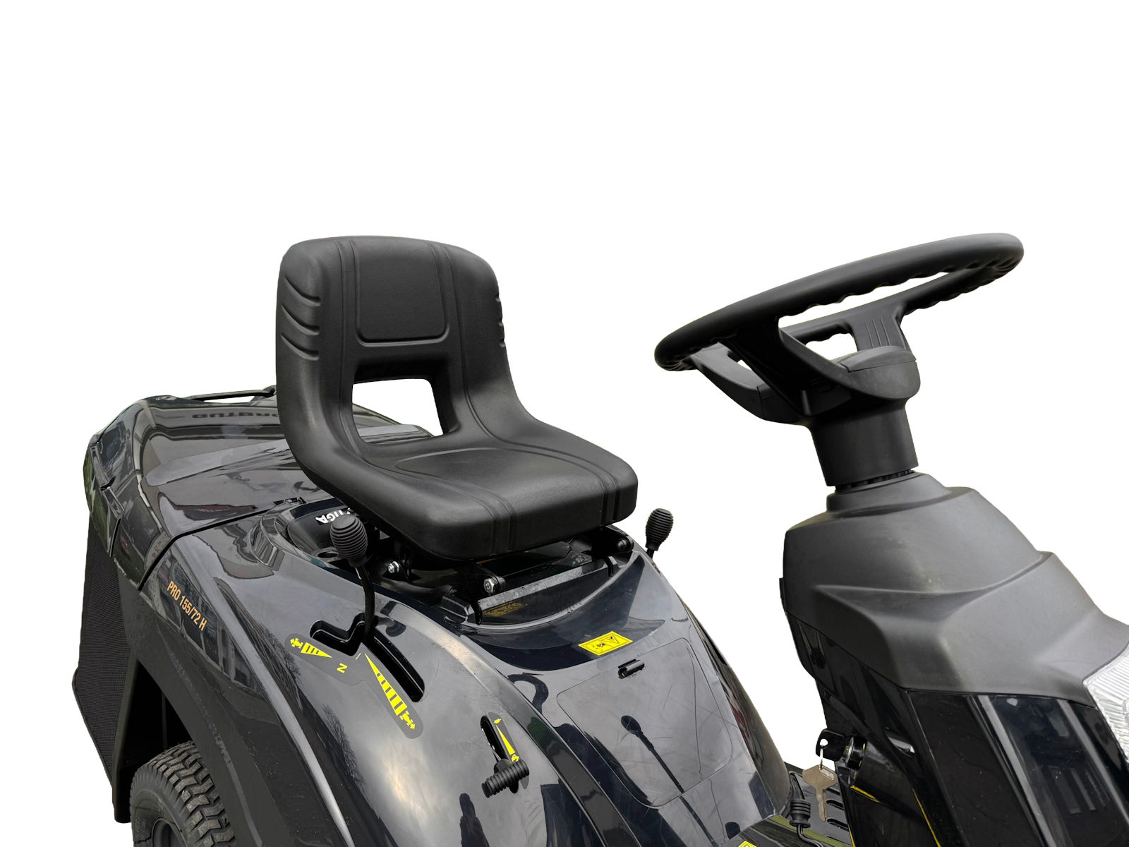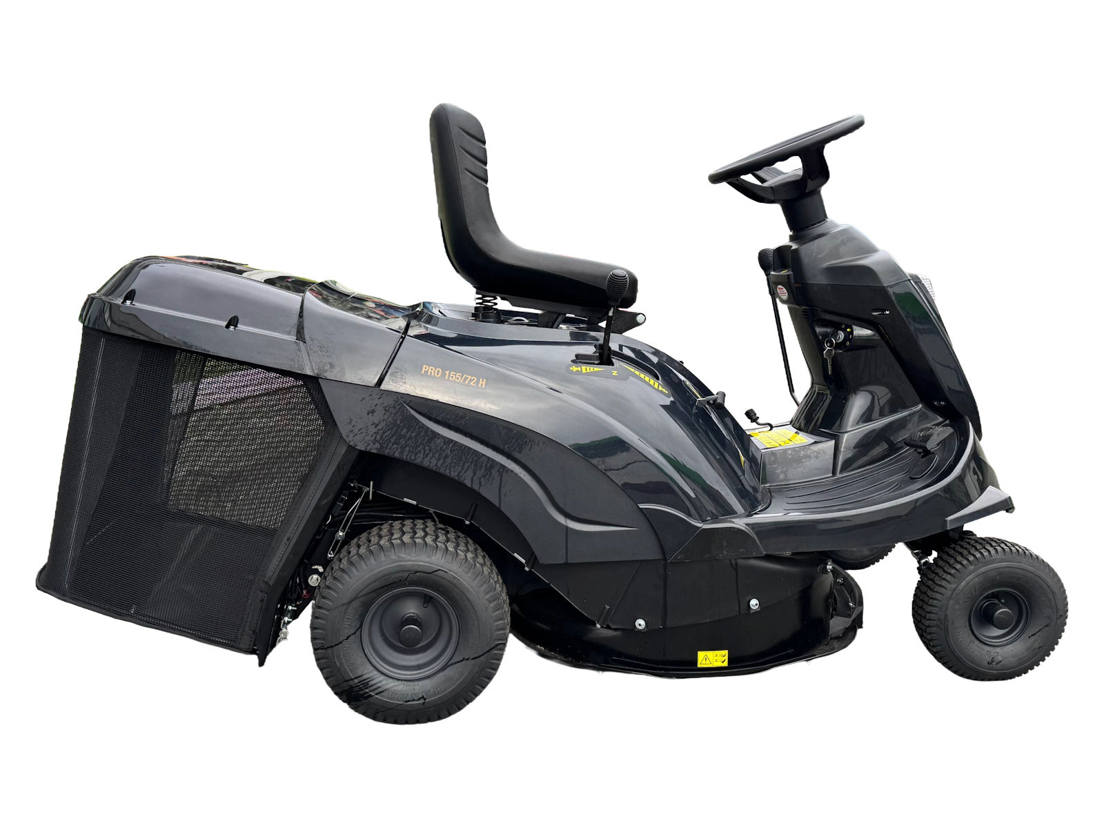 Der Black Edition Aufsitzmäher 155/72 H ist zwar klein, aber dennoch sehr produktiv: Mit seinem großen 170 Liter Grasfangkorb reduziert sie die Anzahl und Häufigkeit der zeitraubenden Entleerungsstopps auf ein Minimum (der Fangkorb kann vom Sitz aus entleert werden).