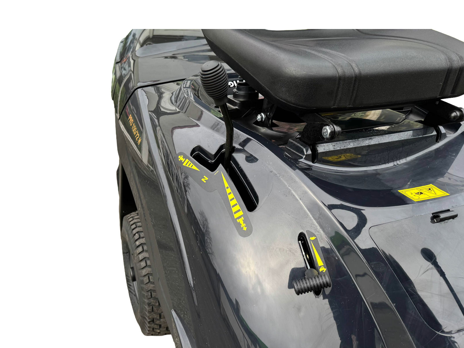 Die Kombination aus einer Deckbreite von nur 72 cm und einem Hydrostatgetriebe, das eine stufenlose Geschwindigkeitsregelung ermöglicht, macht den Black Edition 155/72 H zu einer hervorragenden Wahl für Gärten, in denen eine hervorragende Manövrierfähigkeit und die Fähigkeit, Hindernisse sicher zu umgehen, von entscheidender Bedeutung sind.