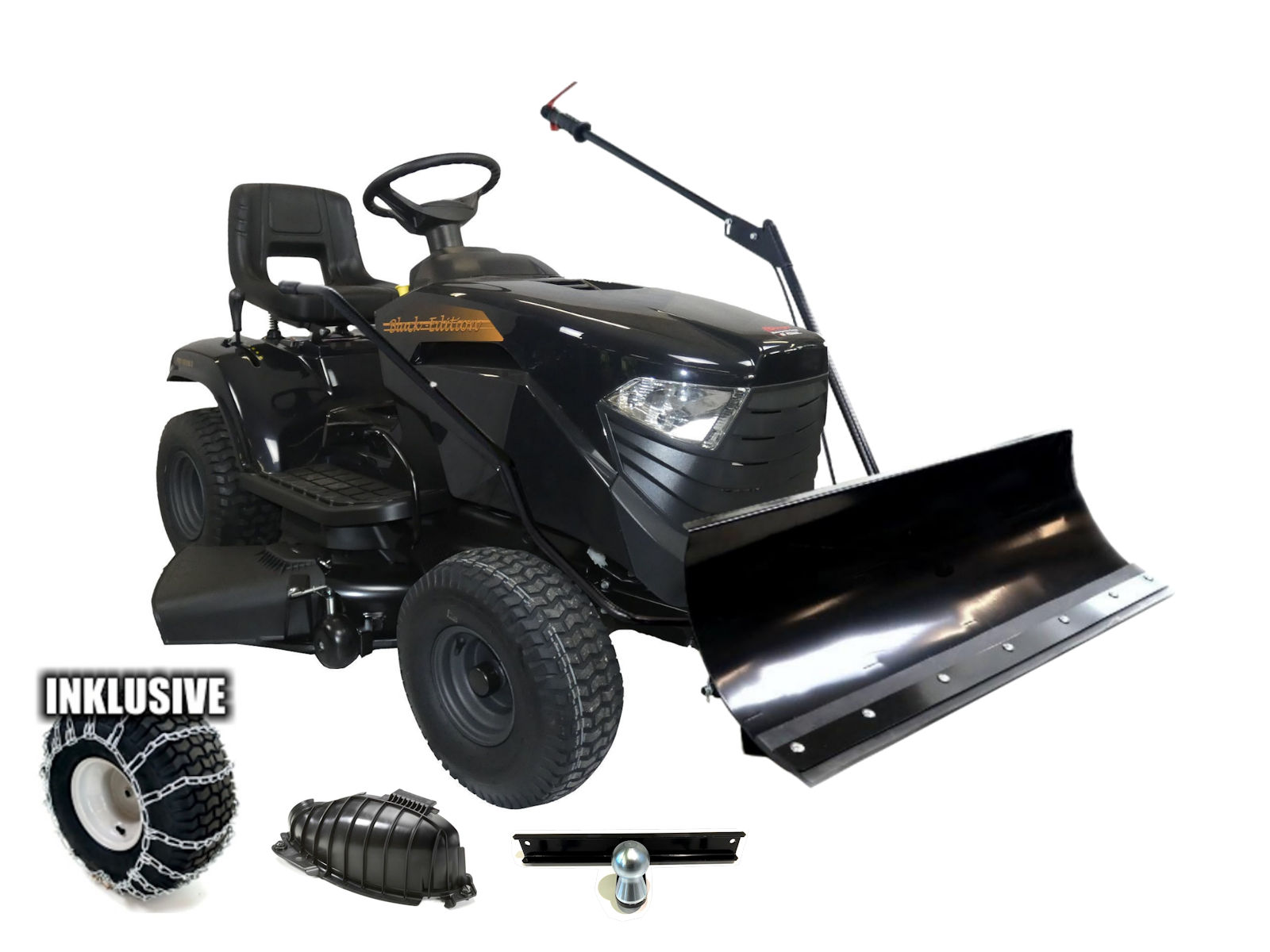 inkl. Winterpaket:110cm PlusKomfort Schneeschild 110cm Plus mit Seitenverstellung und Gummileiste, Anbaurahmen und Aushebung, Schneeketten, Anhängekupplung