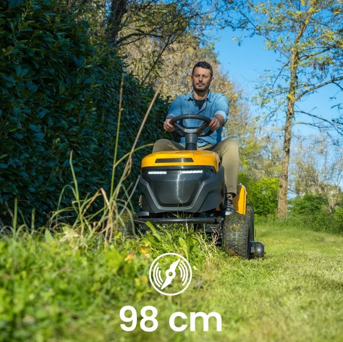 Akku-Seitenauswurftraktor mit 98 cm Mähdeck, Ein-Pedal-Antrieb und STIGA.GO App für effizientes Mähen bis 7.000 m²