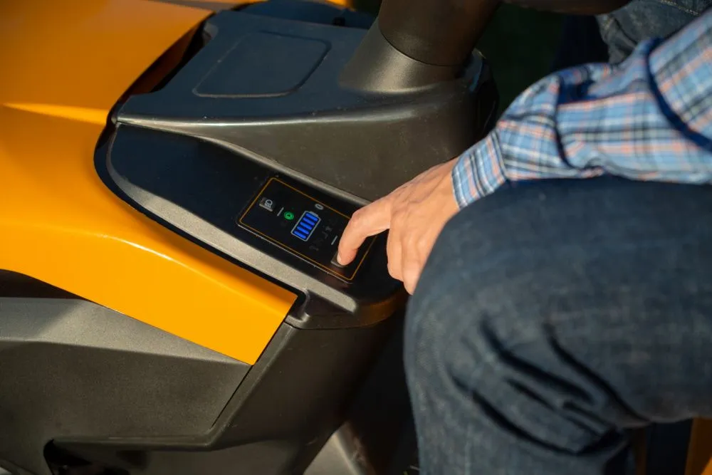 Das vollelektrische Getriebe sorgt für einen ruhigen, leisen und vibrationsfreien Antrieb. Ein einziges Pedal steuert die Bewegung, während intuitive Bedienelemente und ein ergonomisches Design jede Mäharbeit einfacher und komfortabler machen.