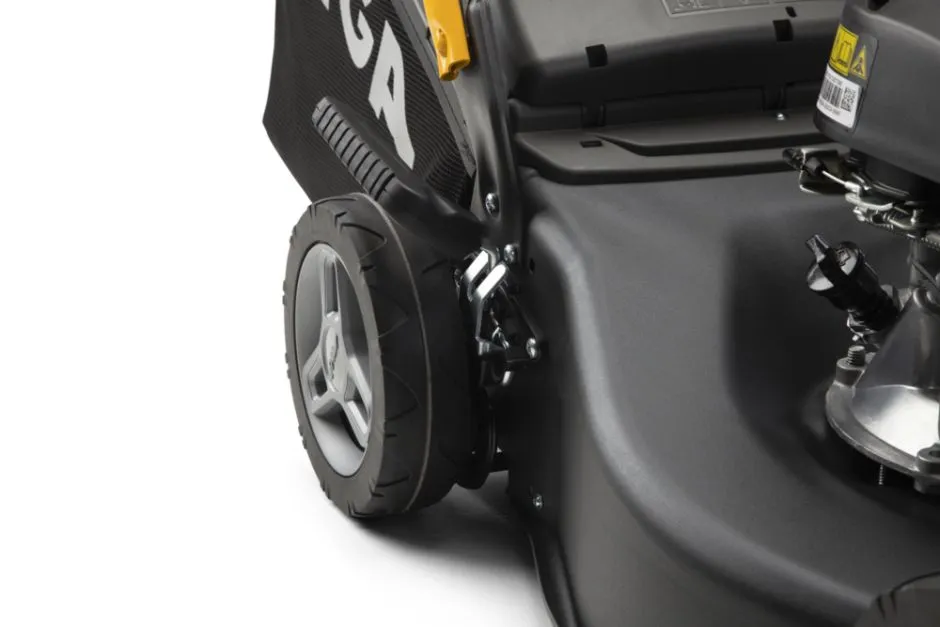 | Fulcrum-Holm | Seitlich versetzbar für randnahes Mähen und platzsparend einklappbar. |