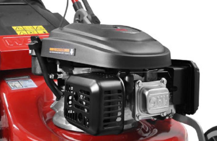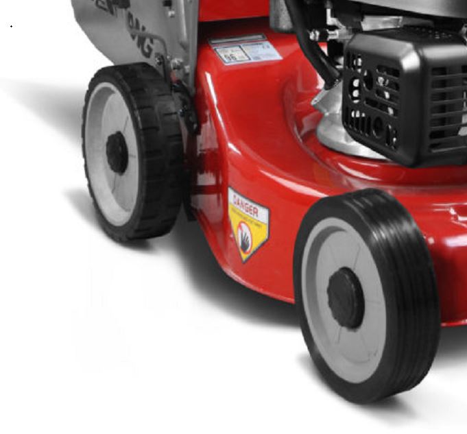 Angetrieben wird der Mäher von einem Loncin Benzinmotor mit 166 cm³ Hubraum. Das robuste, pulverbeschichtete Stahlgehäuse ist auf Strapazierfähigkeit ausgelegt. Durch die aerodynamische Gestaltung von Gehäuse und Messer wird der Grasschnitt beim Auffangen mehrfach zerkleinert, was zu einem feinerem Schnittgut beiträgt.