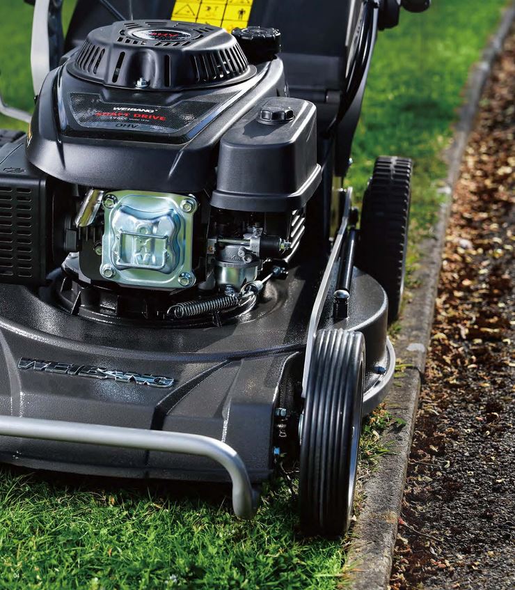 Weibang Pro OHV Motor 196 cm³Der 196 cm³ starke Weibang Pro OHV Motor liefert eine Leistung von 4,8 kW / 6,5 PS. Das sorgt für kraftvolle Performance – auch bei dichterem Gras und längeren Einsätzen. |