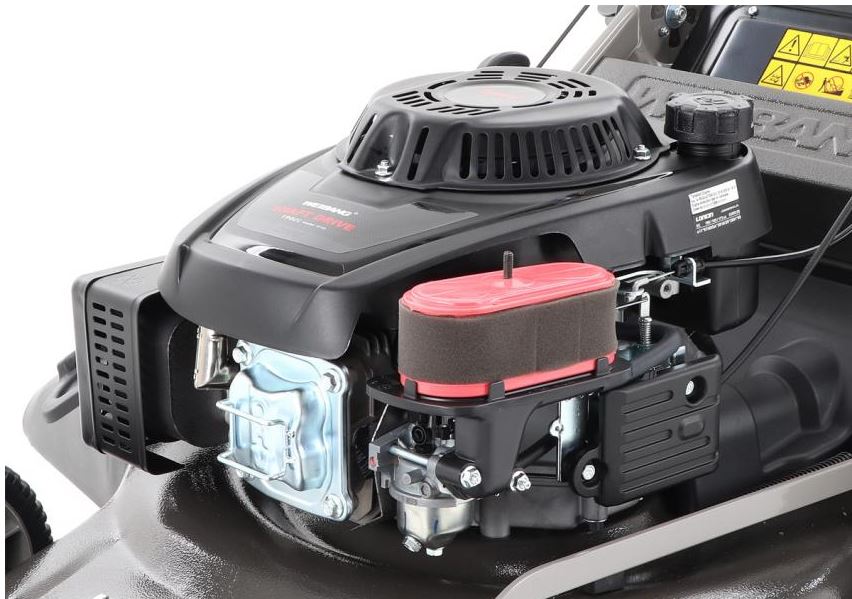 Angetrieben wird der Mäher von einem Weibang Pro OHV Motor mit 196 cm³ Hubraum und einer Leistung von 4,8 kW / 6,5 PS. Für komfortables Mähen sorgt das 3-Gang Schaltgetriebe mit Antrieb über Kardanwelle. Diese Konstruktion ist auf Langlebigkeit ausgelegt und reduziert typische Verschleißpunkte im Antriebsstrang. Die Fahrgeschwindigkeit kann passend zu Fläche und Bewuchs gewählt werden (2,9 / 3,6 / 4,3 km/h).